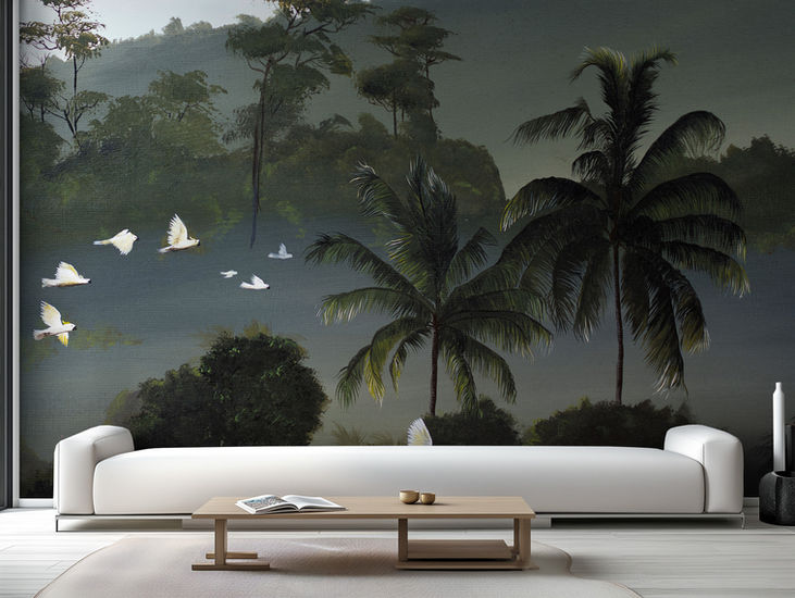 Donnez à votre espace intérieur une ambiance tropicale avec ce Papier peint White Cockatoos. Ce papier peint représente la jungle et un vol de kakatoès, apportant une touche exotique à n'importe quelle pièce de la maison. Les couleurs sombres et les détails réalistes de ce papier peint en font un choix parfait pour créer une atmosphère vivante et apaisante. Transformez votre espace en un paradis tropical avec ce Papier peint White Cockatoos.